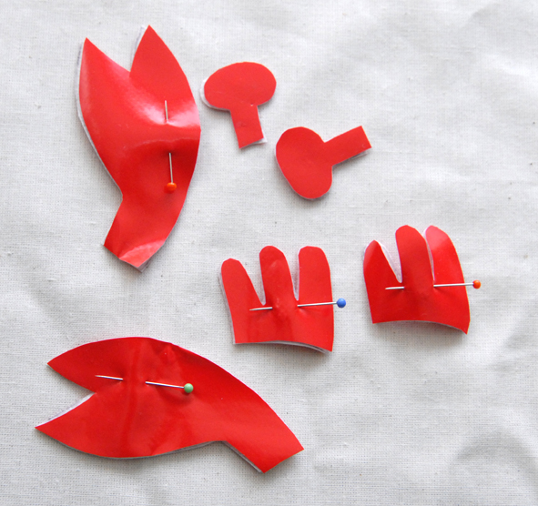 tracez toutes les pièces sur la toile cirée (avec les gabarits sinon ça sert à quoi ce que vous avez fait avant !!!)