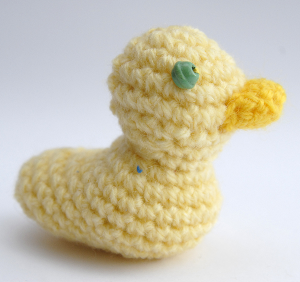 Et voilà une petite abeille crochetée qui butine sa fleur et un petit canard crocheté lui aussi totalement inutile … (quoique on peut toujours y piquer les aiguilles qui traînent)