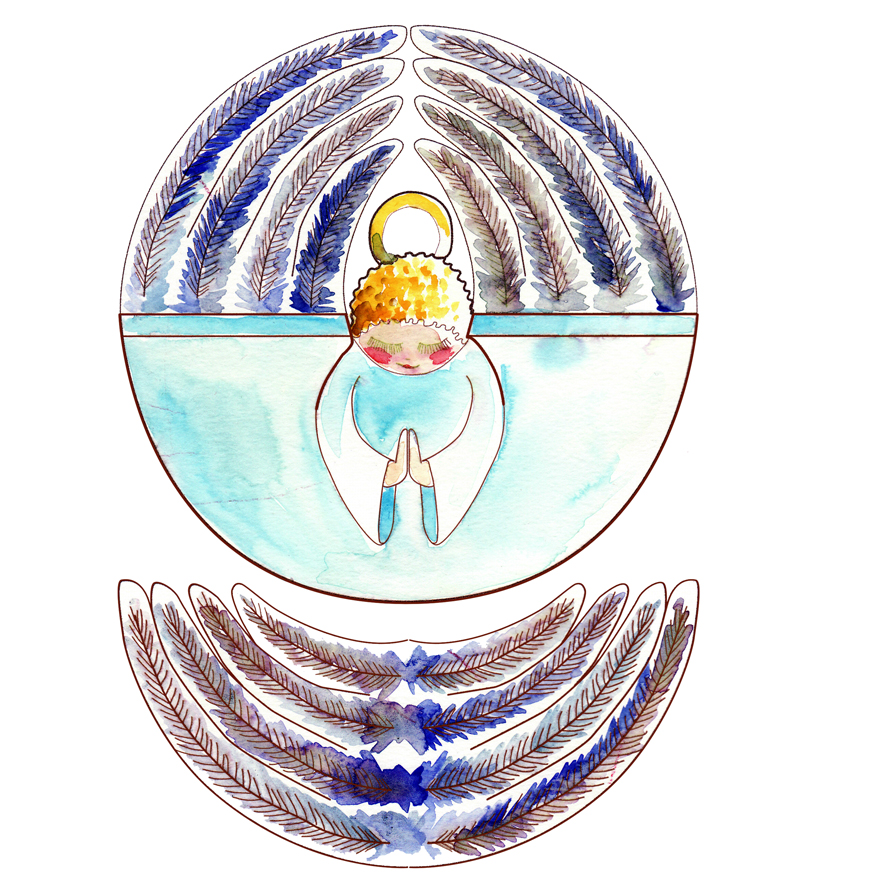 Un petit ange en couleur pour garnir la crèche, à imprimer à volonté sur du papier 180 g.