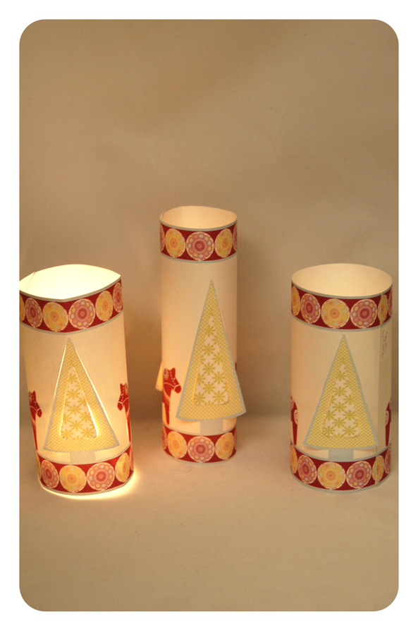 Pour changer des bougies toutes simple, toujours sur le thème des dala horse, je vais placer sur la table de noël des photophores de papier pour apporter cette touche de douceur.