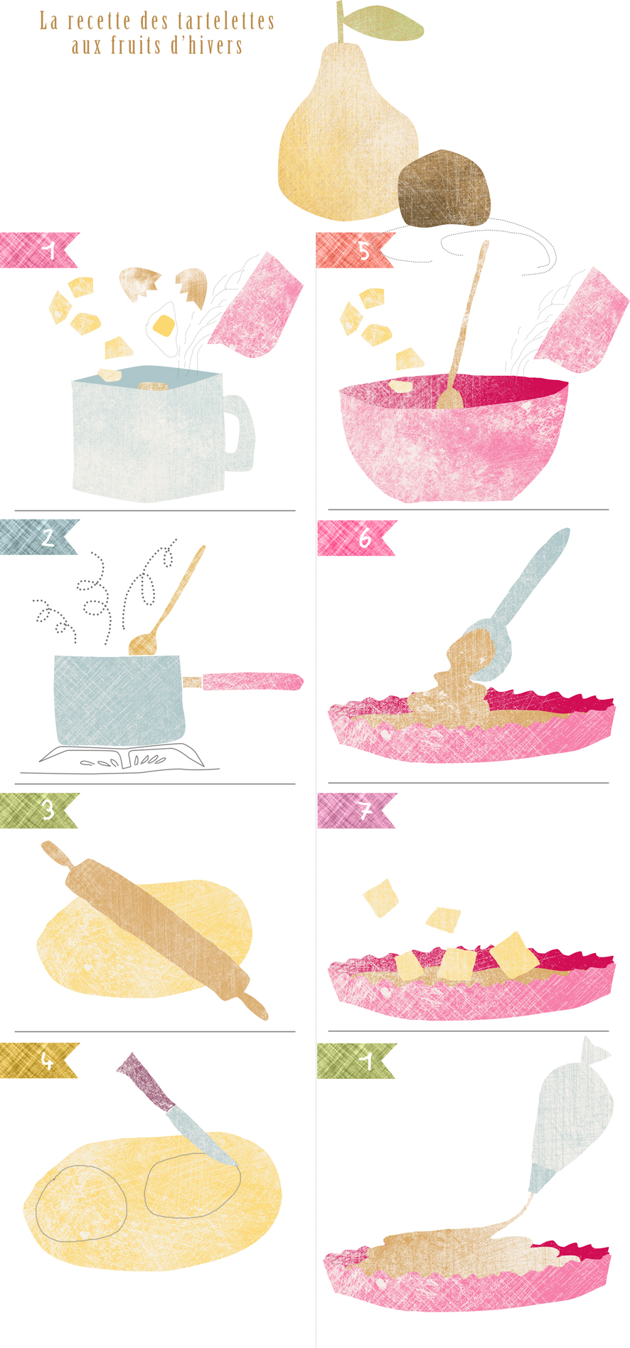 J’ai réalisé des tartelettes, aux poires, crème d’amande, crème de marron et mousse de marron.