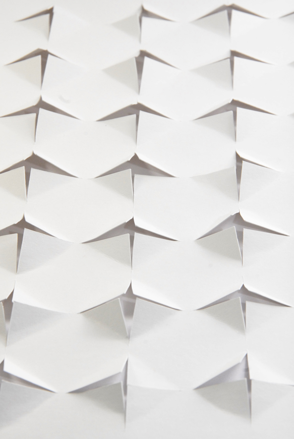 pas question de s’en débarrasser, je sors mon arme favorite, le camouflage ! Le relooking total est souvent irréversible et mes goûts sont comme la mode, cyclique. Un camouflage tout en papier, pliage simple et découpage géométrique.