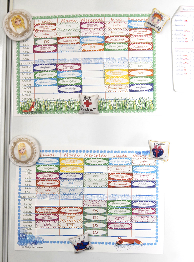 Allez savoir pourquoi ? Sachant cela, pour être sûre de ne pas oublier un rendez-vous important, je le note sur le calendrier de la cuisine, dans mon agenda, sur mon téléphone, et maintenant sur ce semainier que je me suis bricolé.