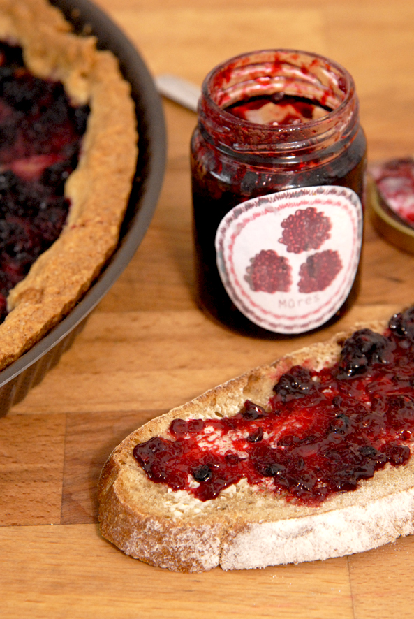 Un petit coup d’œil de ce qu’il y a de disponible et j’improvise une recette de tarte au mûres totalement au feeling. Bon je note quand même les ingrédients et les quantités dans mon cahier au cas où mon feeling du jour soit bon.