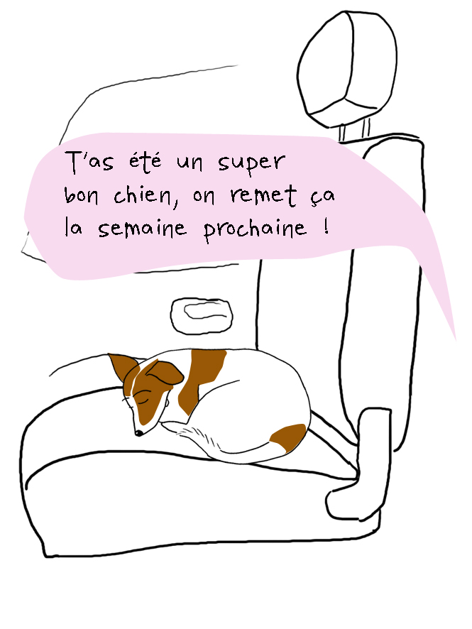 Pour bien faire il aurait fallu l’emmener là où il allait évoluer dans sa nouvelle vie. Faire le tour du quartier pour observer son comportement face aux bruits, aux passants, aux autres chiens. Cela nous aurait permis de savoir exactement à quoi s’attendre, et peut être réfléchir d’avantage avant de l’adopter, savoir ce que nous étions capable de rectifier et ce que nous ne pouvions pas faire seuls. Nous renseigner sur la possibilité d’une rééducation, à quel coût.