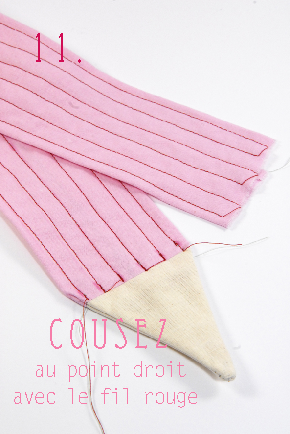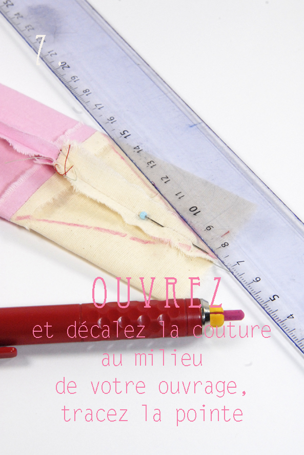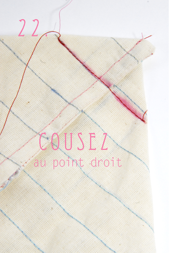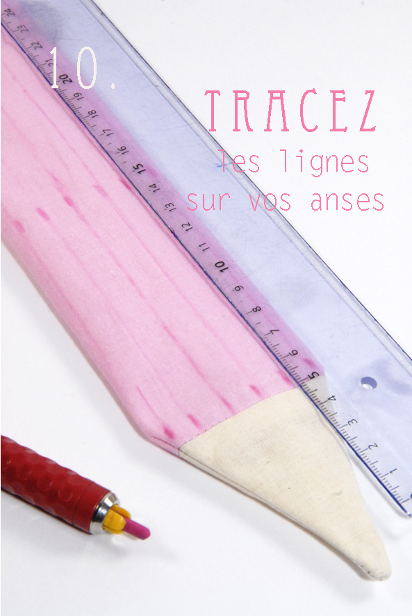 Je l’ai fait au feutre permanent mais si vous ne voulez pas que les trait soit visible après la couture, tracez les lignes à la craie ou au feutre soluble