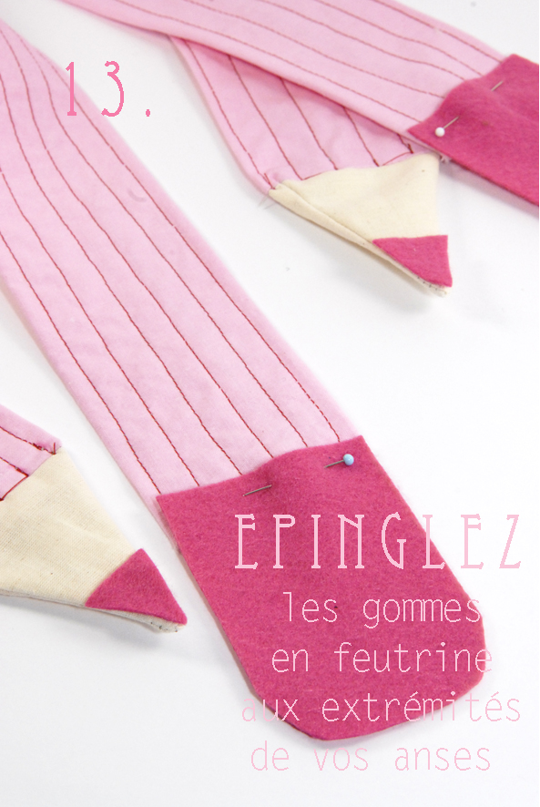 – d’une chute de feutrine assortie à la anse pour faire la pointe du crayon et la gomme